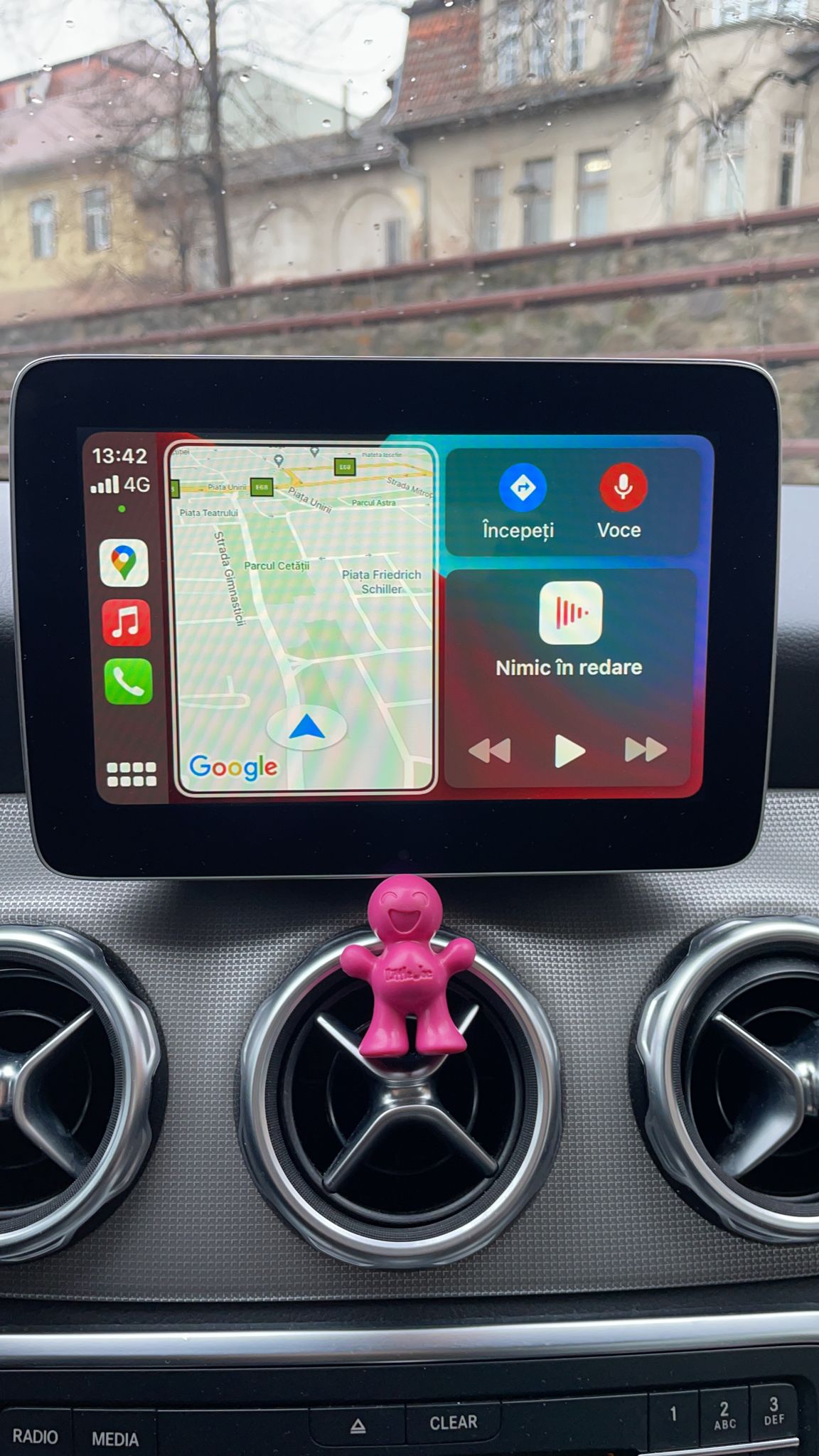 Aplicatiile prestabilite sunt: Waze, Maps, Google Maps, Whatsapp, Spotify, Yutube Music, Agenda Telefon, Mesaje, Calendar, etc